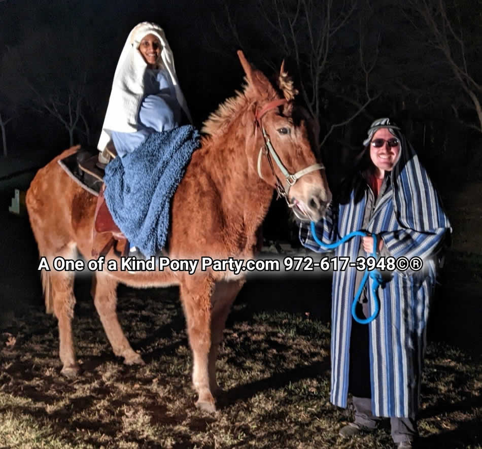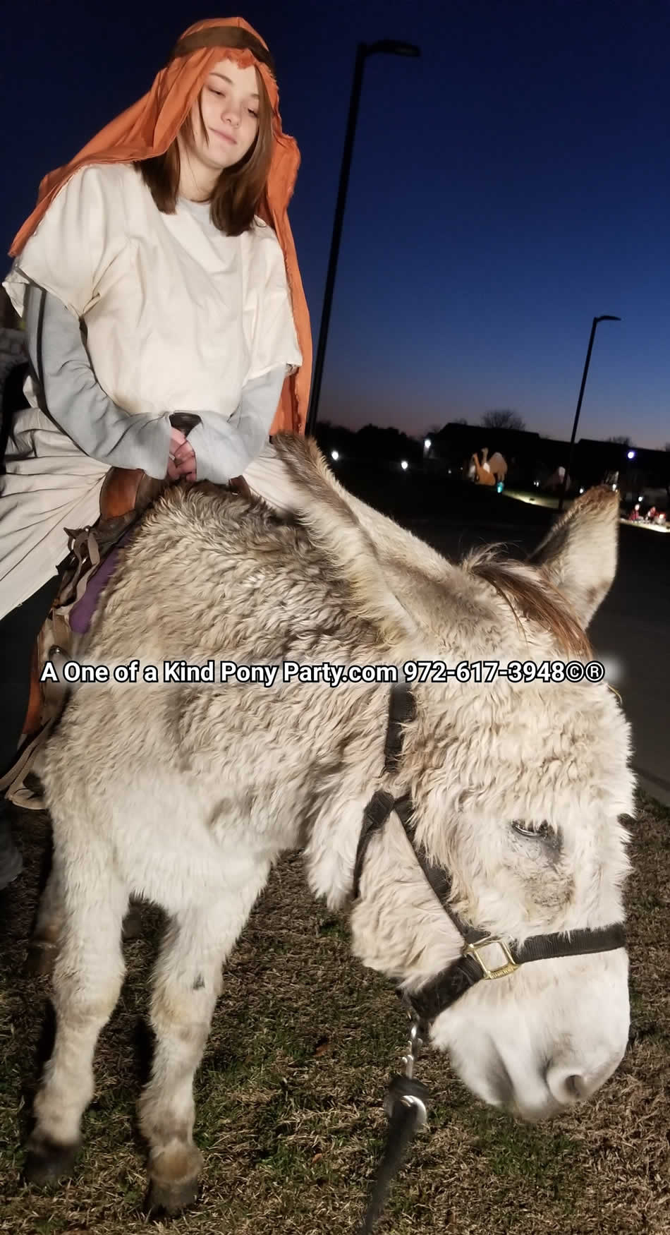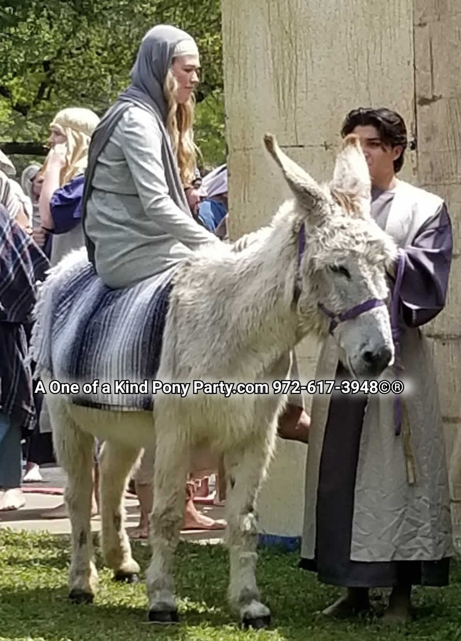 We are proud to offer donkey's for riding as well. We still have miniature donkeys for hand leading but are now offering standard donkeys and mules for hand led riding. Make your nativity or Easter event more memorable by having Mary or Jesus riding on God's chosen beast of burden.
